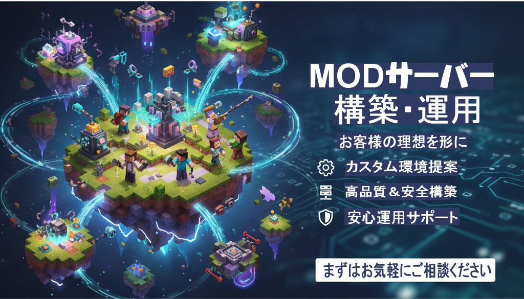 先日、お客様からMinecraftのMODサーバー構築のご依頼をいただきました。既存のサーバーでは実現できない、特定のMOD環境でのゲームプレイを望む声にお応えするため、企画段階からサポートさせていただきました。